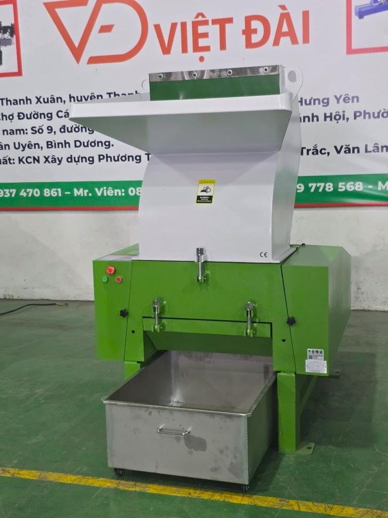 Máy băm nhựa 6 tấc Việt Đài là công cụ đắc lực không thể thiếu trong ngành công nghiệp sản xuất nhựa. Máy có chức năng băm nghiền các nguyên liệu PVC, PE, LDPE, PP, ABS, PS, PA, PC, LLDPE, HDPE,… thành các hạt nhỏ phục vụ cho hoạt động tái chế hạt nhựa.