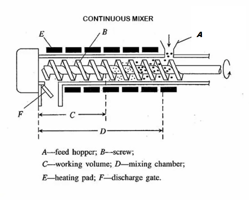 Thiết bị hoạt động liên tục, có nghĩa là vật liệu có thể được nạp liên tục và thải ra liên tục. Các nguyên liệu đầu vào có kích thước khác nhau, hình dạng khác nhau và mật độ khác nhau. Do lực cắt lớn, vật liệu được trộn kĩ và biến thành dạng bột nhuyễn sau quá trình trộn, cắt.