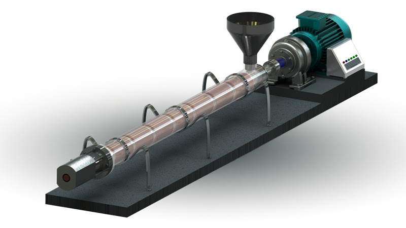 - Hạt nhựa được đưa vào phễu của máy đùn. Tại đây, với tác động của nhiệt độ, căn chỉnh của hệ thống, làm cho các hạt nhựa mềm và ren hóa thành một khối thống nhất.
