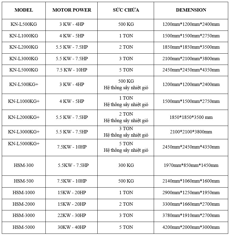 Bảng số liệu thông số kỹ thuật dưới đây chỉ là tham khảo, để biết thêm chi tiết từng máy bạn có thể gọi điện hoặc inbox cho chúng tôi, luôn có đội ngũ nhân viên sẵn sàng tư vấn rõ hơn cho bạn về từng thông số kỹ thuật.