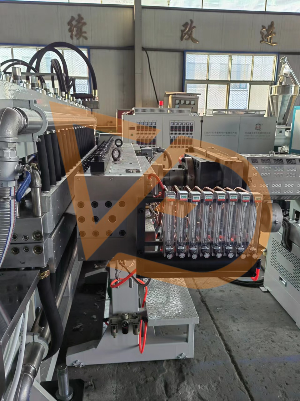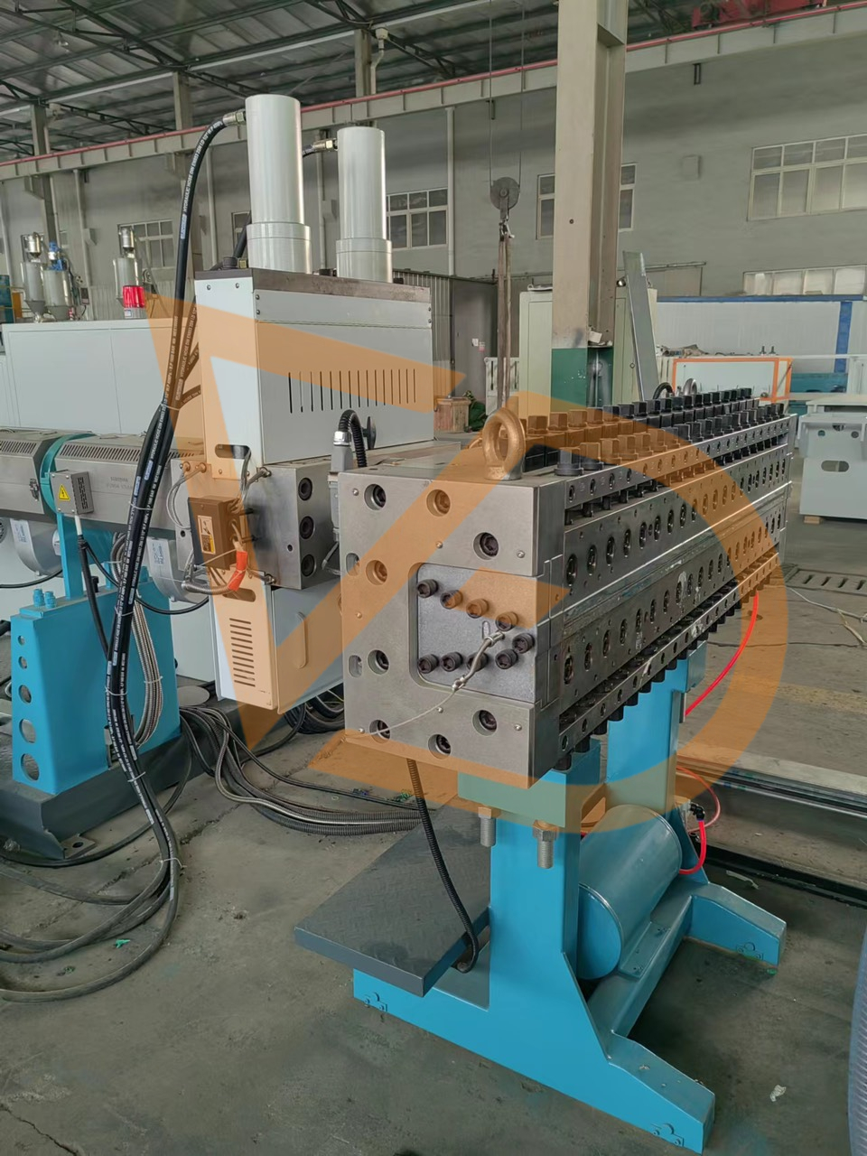 Máy đùn :Trục vít được thiết kế đặc biệt để dễ dạng vệ sinh, thay thế trục vít khi cần và hệ thống kiểm soát nhiệt độ điều khiển bằng màn PLC tiên tiến đảm bảo độ dẻo tốt của nhựa và khả năng ép đùn ổn định với sản lượng cao